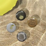 This tropical 4-pin set brings vacation to your everyday look. Each 1-inch button is designed, hand-printed, and pressed by me, making them unique.